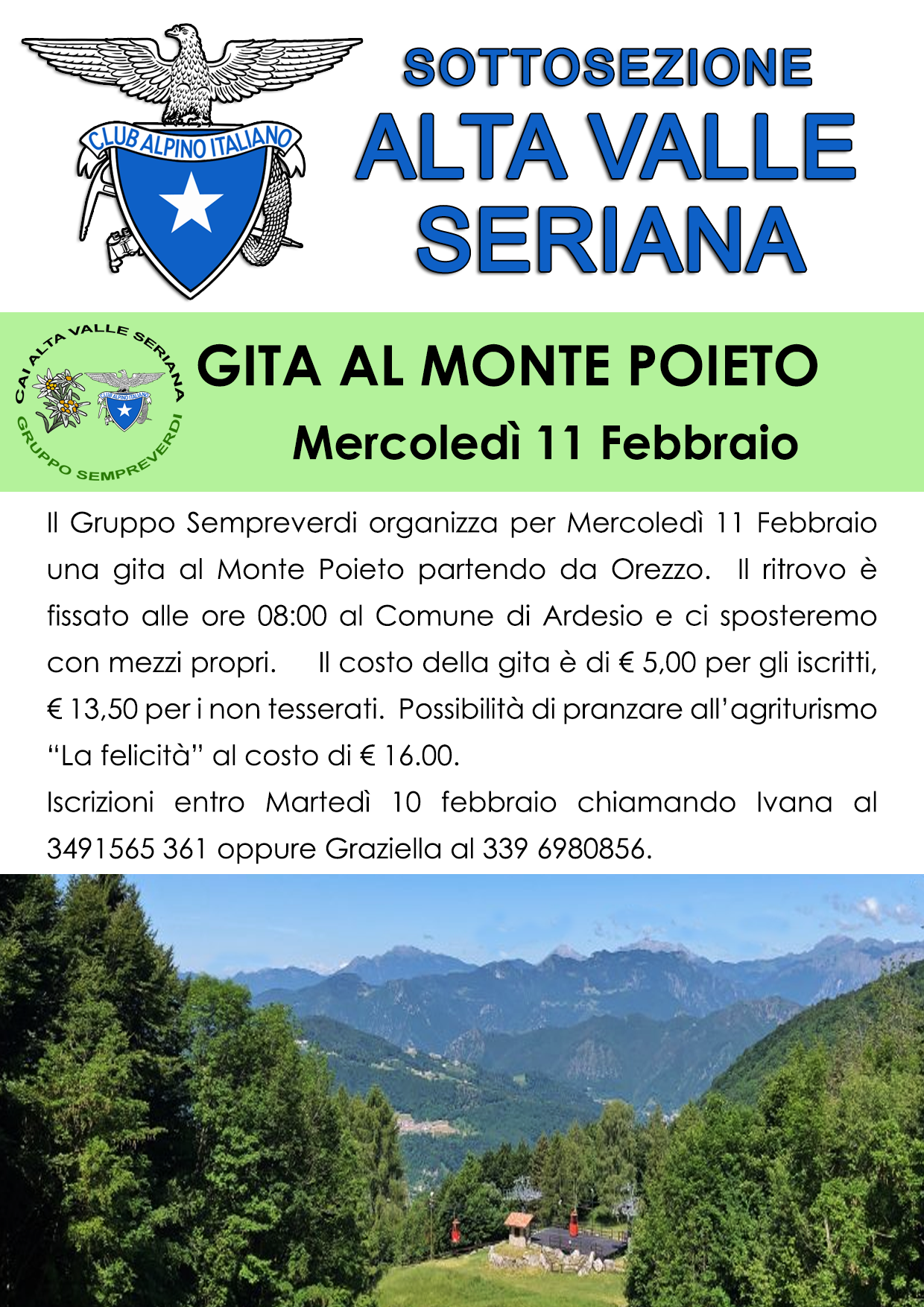 | 11 Febbraio | Gita al Monte Poieto |